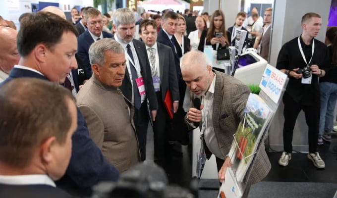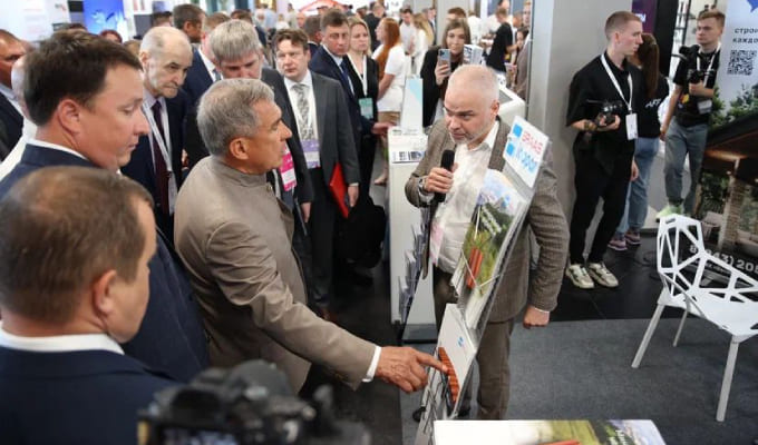 Стенд BMI Россия посетил Глава Республики Татарстан Рустам Нургалиевич Минниханов, пообщался с командой BMI Россия, проявил интерес к минеральной черепице БРААС, пожелал успехов и процветания компании.