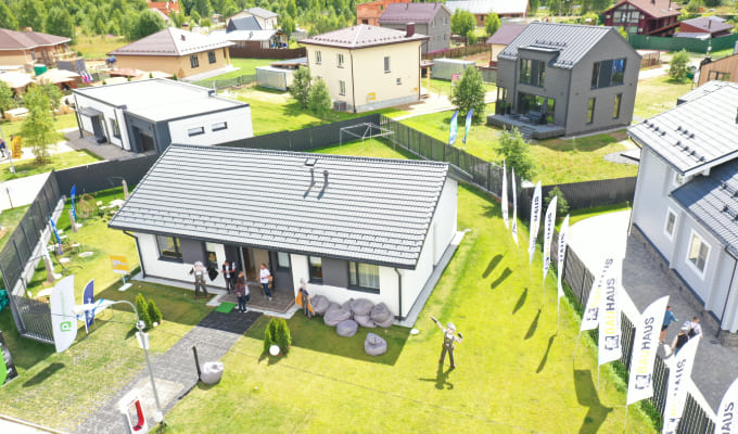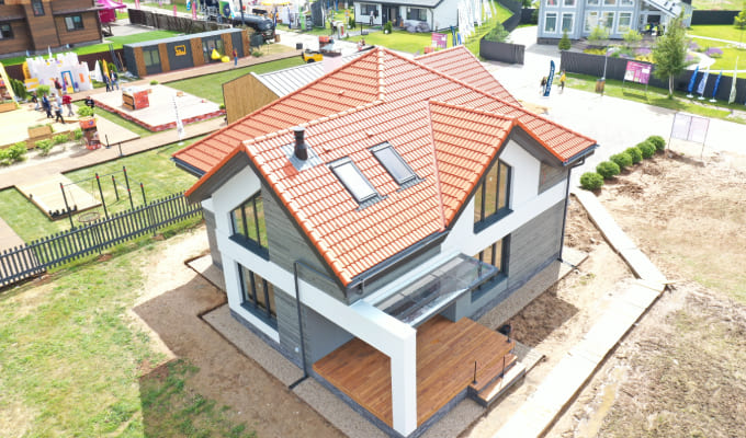 На выставке Open Village 2022 черепичная кровля БРААС была представлена на объектах сразу нескольких строительных компаний: Bauhaus, Domix, Unistroy.