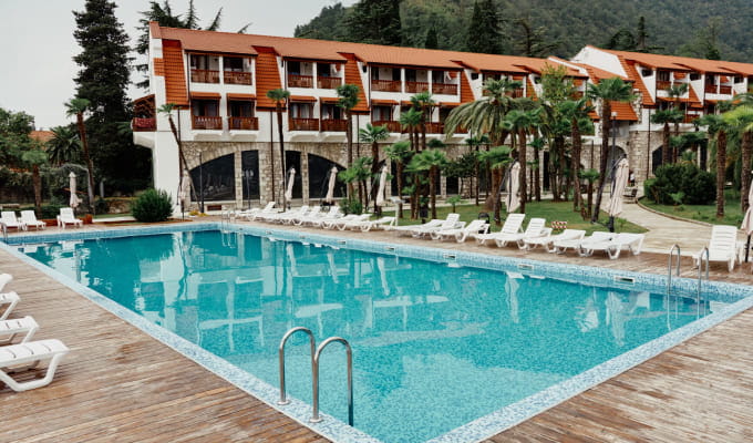 Популярный курорт Гагра известен живописными набережными и парками, утопающими в зелени цветов, пальм и кипарисов. Побывав здесь хотя бы однажды, обязательно услышишь о гостиничном комплексе «Абаат», который принято называть визитной карточкой города. Отель стал продолжением развития курорта, заложенным в начале 20 века Принцем Ольденбургским при постройке великосветского черноморского курорта на территории средневековой крепости Абаата.