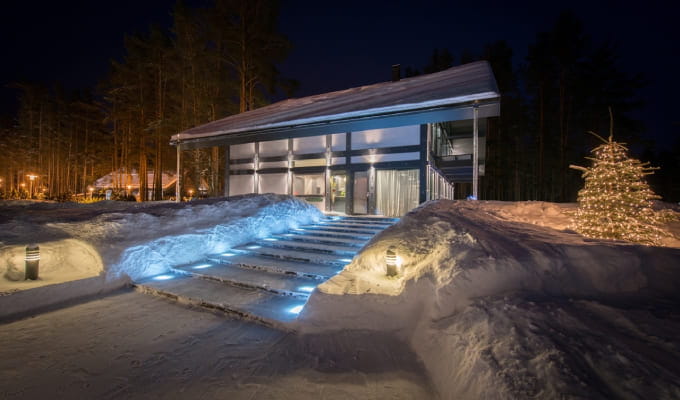 С помощью панорамного остекления максимально открыли красивые виды и запустили свет внутрь коттеджей, окружающая природа стала частью интерьера, меняющегося каждый день, в зависимости от времени года или суток. Так, зоны основного времяпрепровождения - гостиные, столовая, кухня - озарены естественной природной красотой, а в центральной части, где меньше света, каминная зона создает необыкновенное ощущение тепла и уюта.