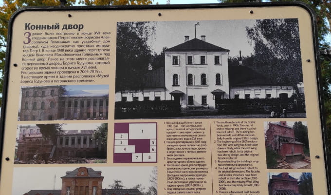 Изначально здание Конного двора являлось усадебным домом (дворцом), куда неоднократно приезжал император Петр I. Затем Н.М. Голицын перестроил палаты и организовал Конный двор. В настоящее время здесь расположен «Музей Бориса Годунова и петровского времени». Реставрация здания была проведена в 2005‑2015 годах, при этом изменились пропорции и фасад, была убрана центральная арка, крыша стала пологой и четырехскатной. Благодаря применению черепицы удалось соблюсти единство природы, истории и архитектуры. Достаточно взглянуть на кровлю, увенчанную минеральной черепицей БРААС модели Франкфурт, в очередной раз убеждаешься в том, что, обретая любую форму, как многие столетия назад, она является образцом неповторимой красоты и надежности. Строгий и одновременно нарядный торжественный вид штучного материала создал изысканный декоративный эффект.