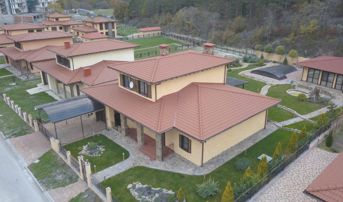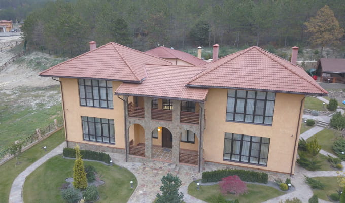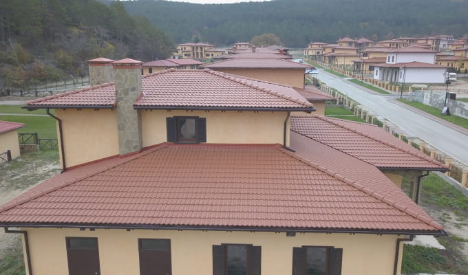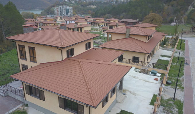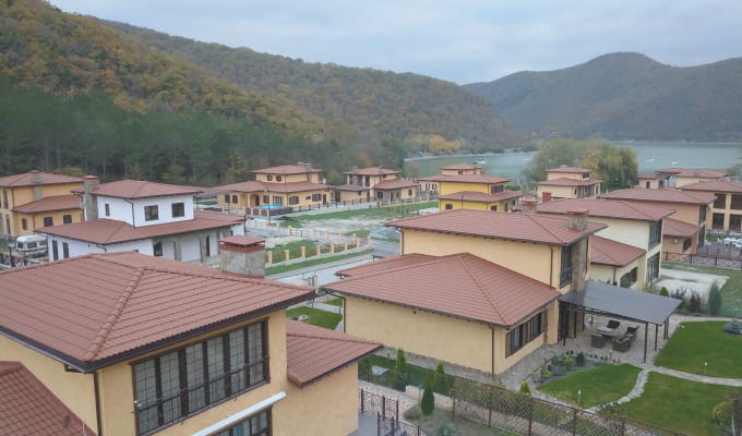 Поставки черепицы БРААС на объект осуществлялись в течение трех лет, а в конце года была отгружена последняя кровля. Всего смонтировано более 20 000 квадратных метров. Франкфуртская минеральная черепица подчеркнула стилистическую уникальность домов, стала изысканным украшением в окружении лесов и потрясающим видом на гладь горного озера Абрау. Заманчиво, не правда ли? Тогда впереди новая история.