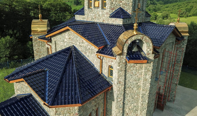 Итак, испокон веков эталоном безупречного кровельного покрытия является черепица. Как и сотни лет назад, это – классика жанра. Ее неповторимая фактура, форма и цвет придают зданию гармонично завершенную архитектуру, а непревзойденные эксплуатационные свойства позволяют служить столетиями, со временем только увеличивая прочность и приобретая благородный облик старины. Применение черепицы на Руси, как кровельного материала, относится к первым векам существования государства и связано это с византийским влиянием. Мастера, прочно внедрившие эту традицию в русское зодчество, широко использовали черепицу для каменных соборов и церквей. С возрождением православия в России и началом широкого процесса восстановления и строительства храмов резко возросла потребность в надежном и долговечном кровельном покрытии, а также в квалифицированных специалистах-кровельщиках. Сегодня мы видим, как эталонный материал переживает свое второе рождение и пользуется огромным спросом и популярностью.